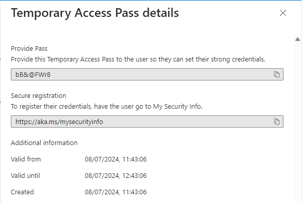 Create and provide a temporary access pass when the user or manager requests it.