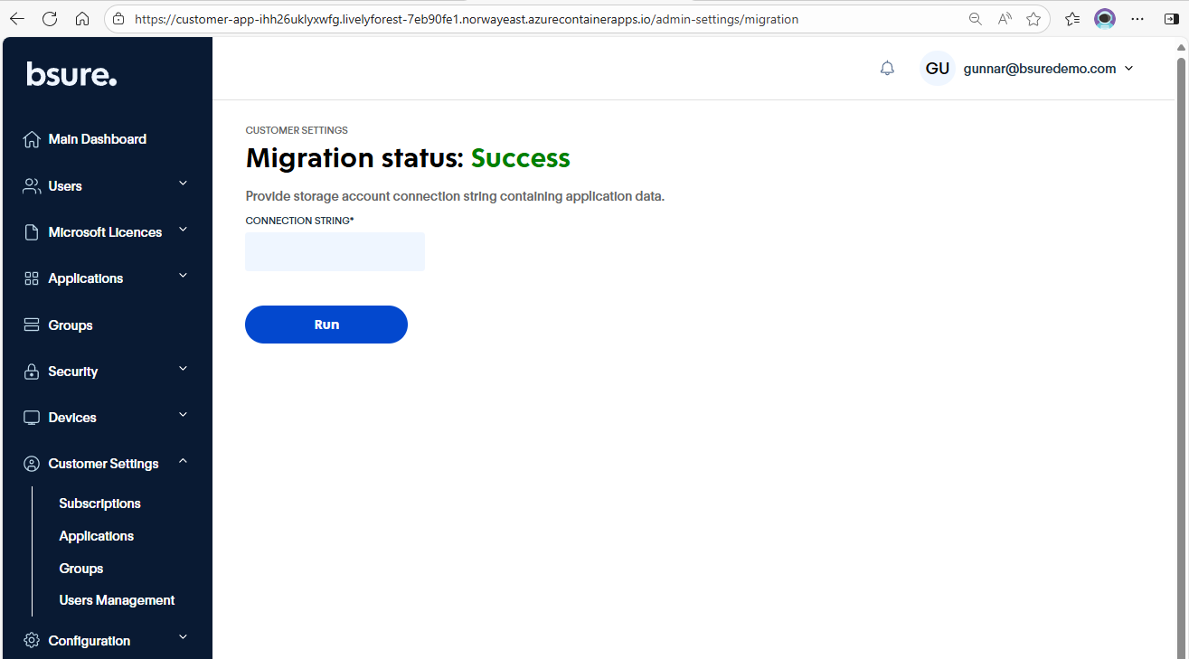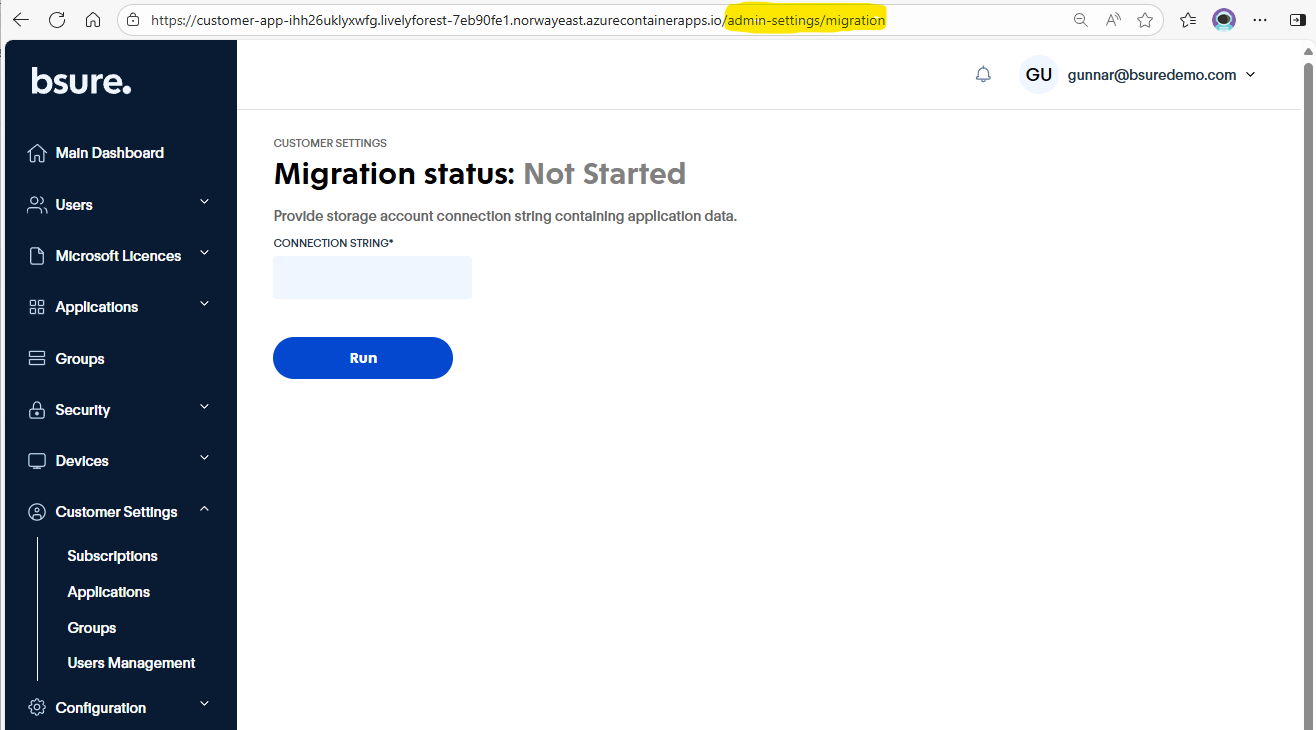 In the address bar, add /admin-settings/migration after main url to Bsure Insights