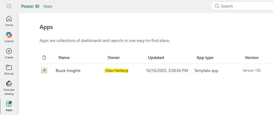 * Power BI app / workspace
