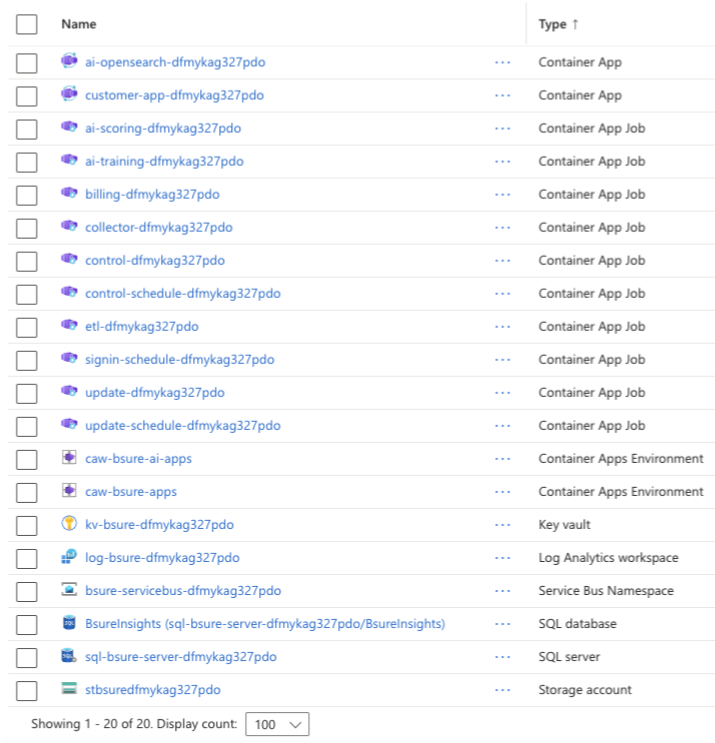 Bsure is responsible for the resources inside the Managed Resource Group. These resources are shown in the picture below.