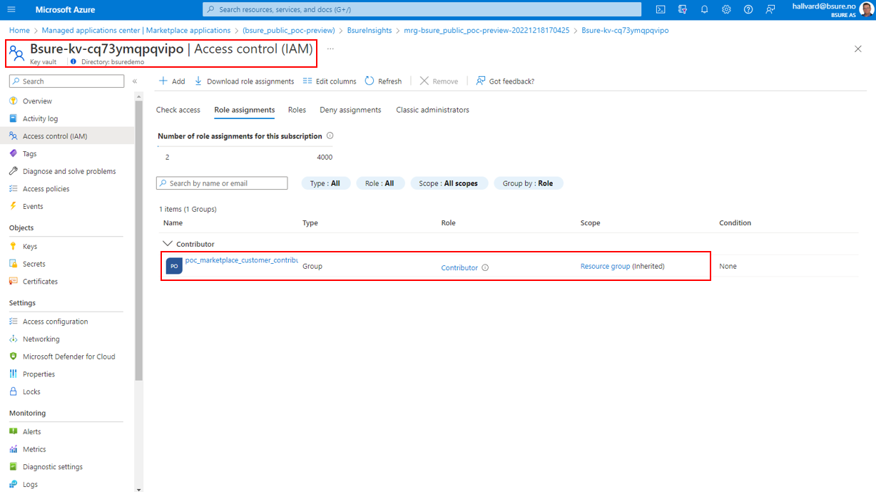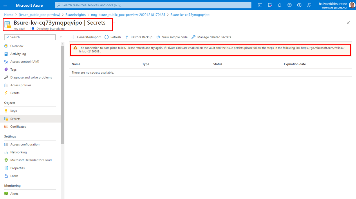 The Keyvault resides in the Managed Resource Group, but Bsure have no access to access the secrets.&#x20;