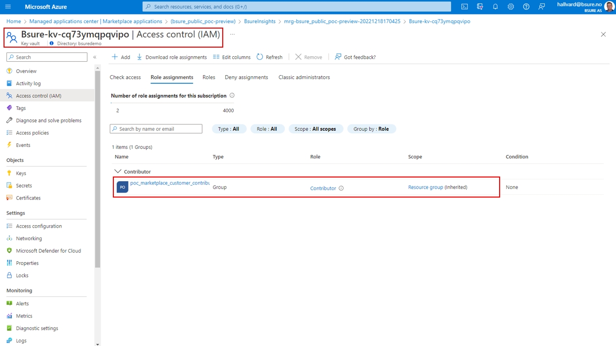The Keyvault resides in the Managed Resource Group, but Bsure have no access to access the secrets.