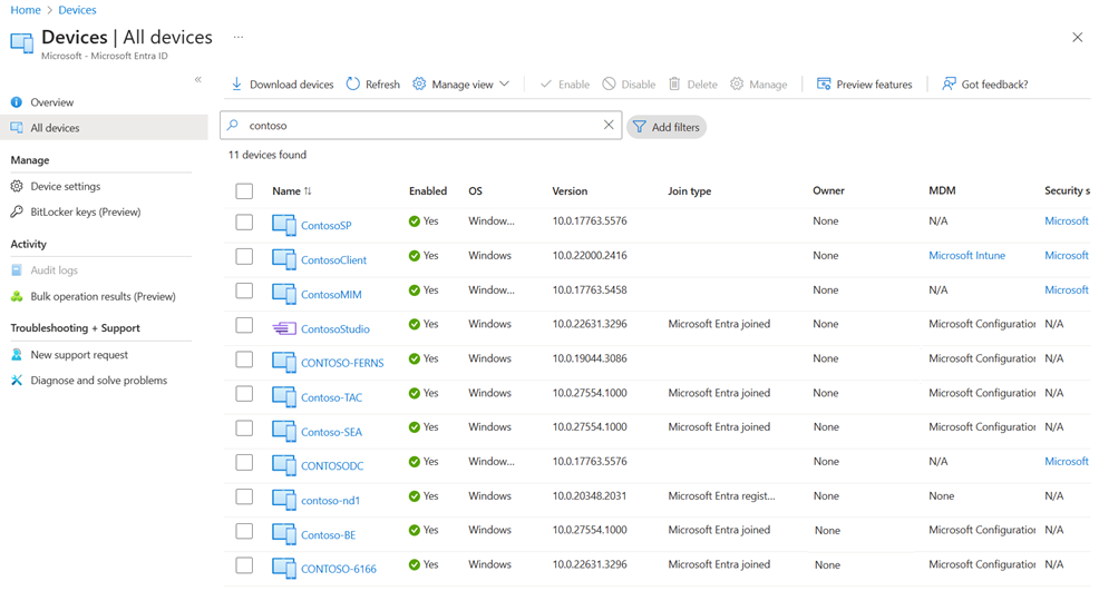 In Microsoft Entra, this data is found in the [All devices](https://entra.microsoft.com/#view/Microsoft_AAD_Devices/DevicesMenuBlade/~/Devices/menuId/Devices) view: