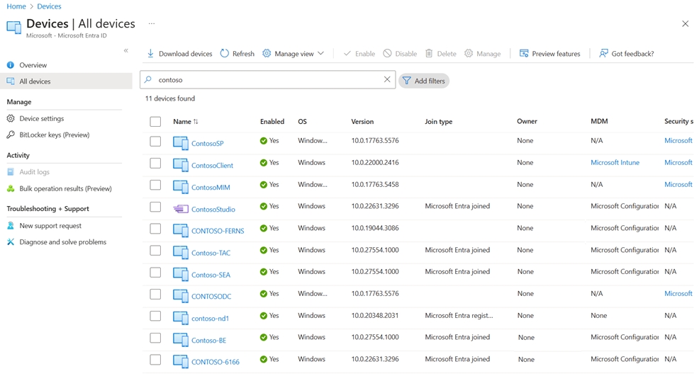 This is determined by comparing the operatingSystemVersion to Microsoft’s official Windows support lifecycle data. A device is marked as "Supported" or "Unsupported" based on whether its version is still within Microsoft’s support period.