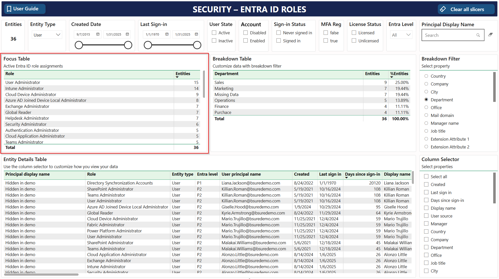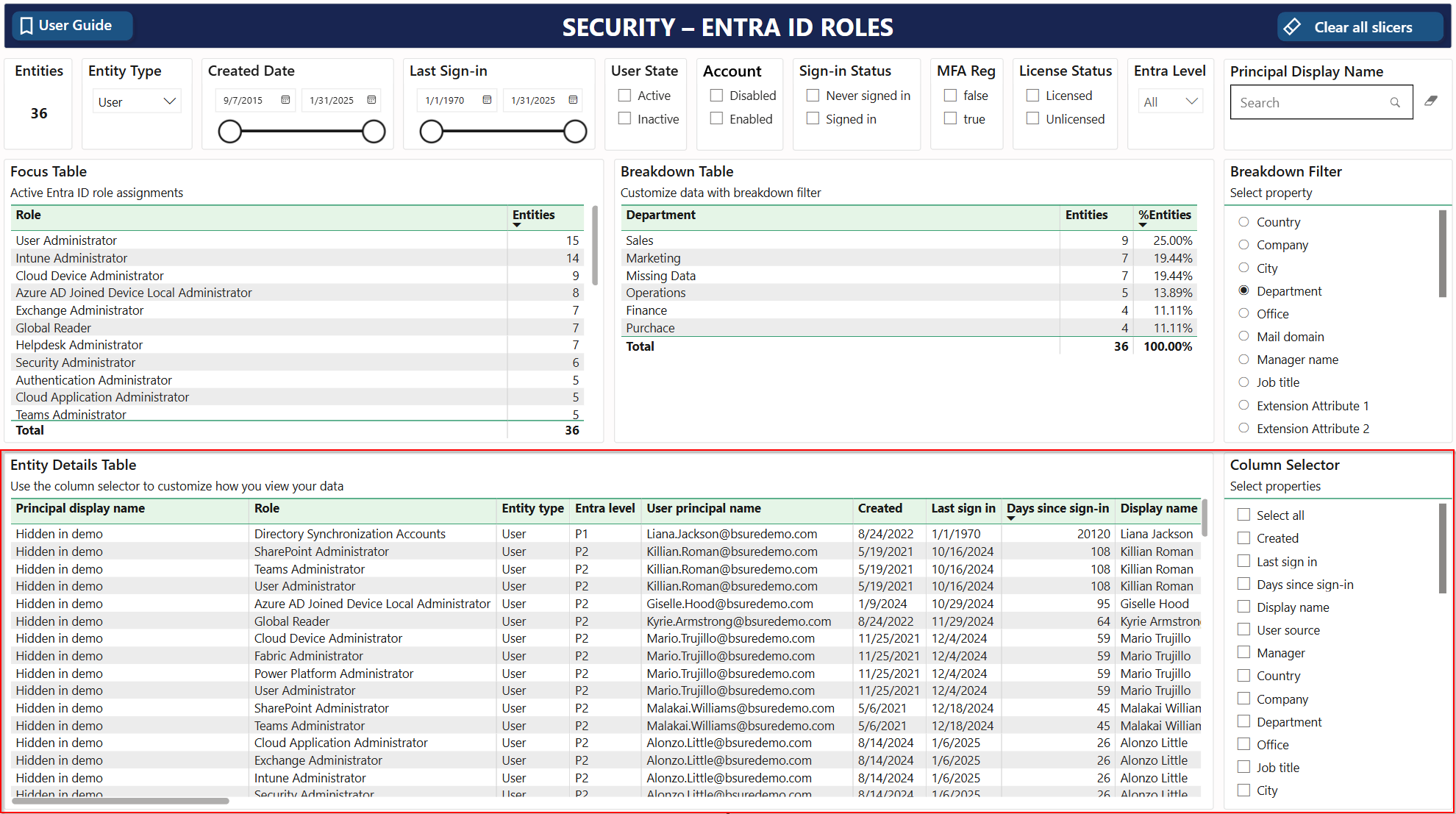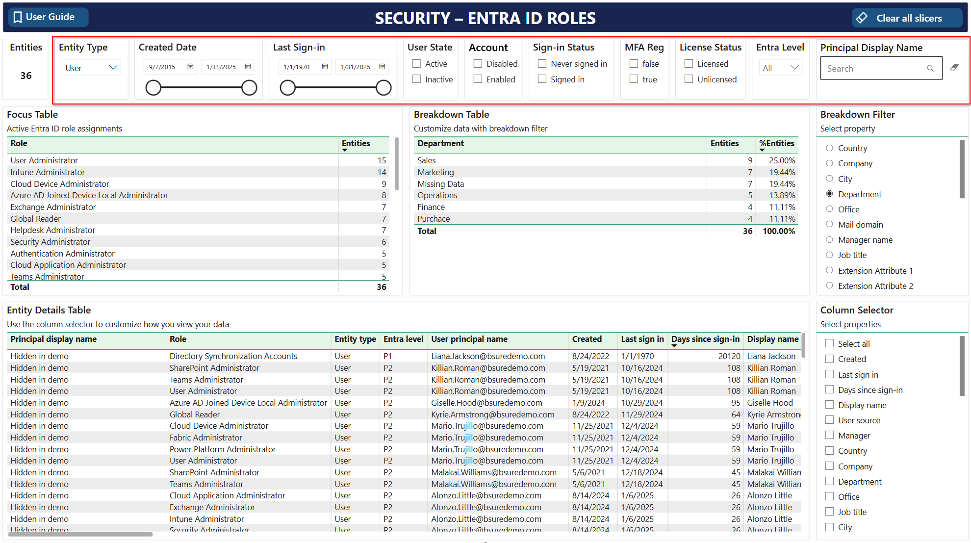 Last sign-in: Use the slicer to determine the last sign-in period of the user