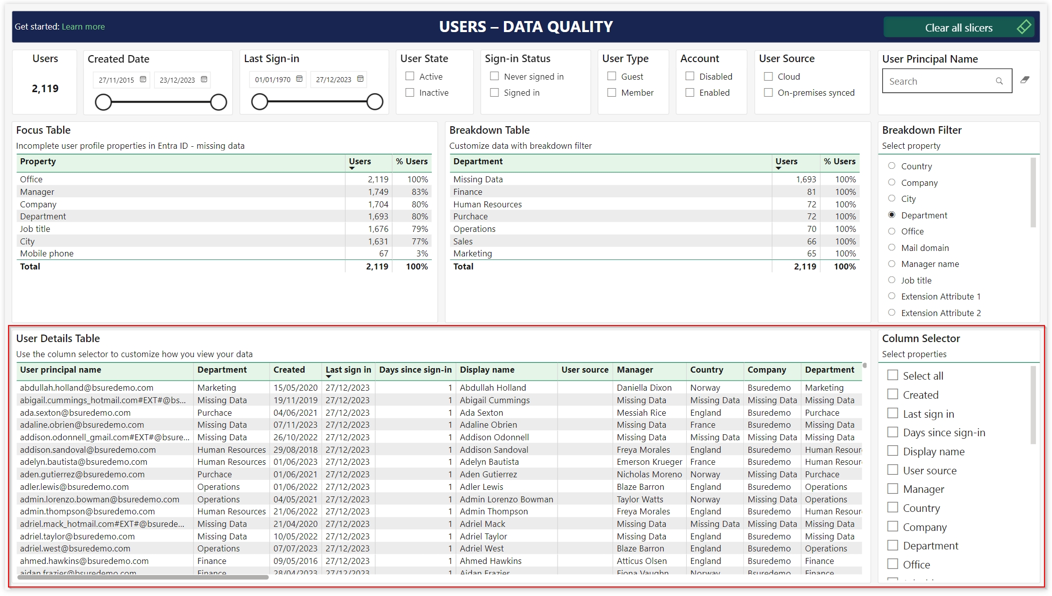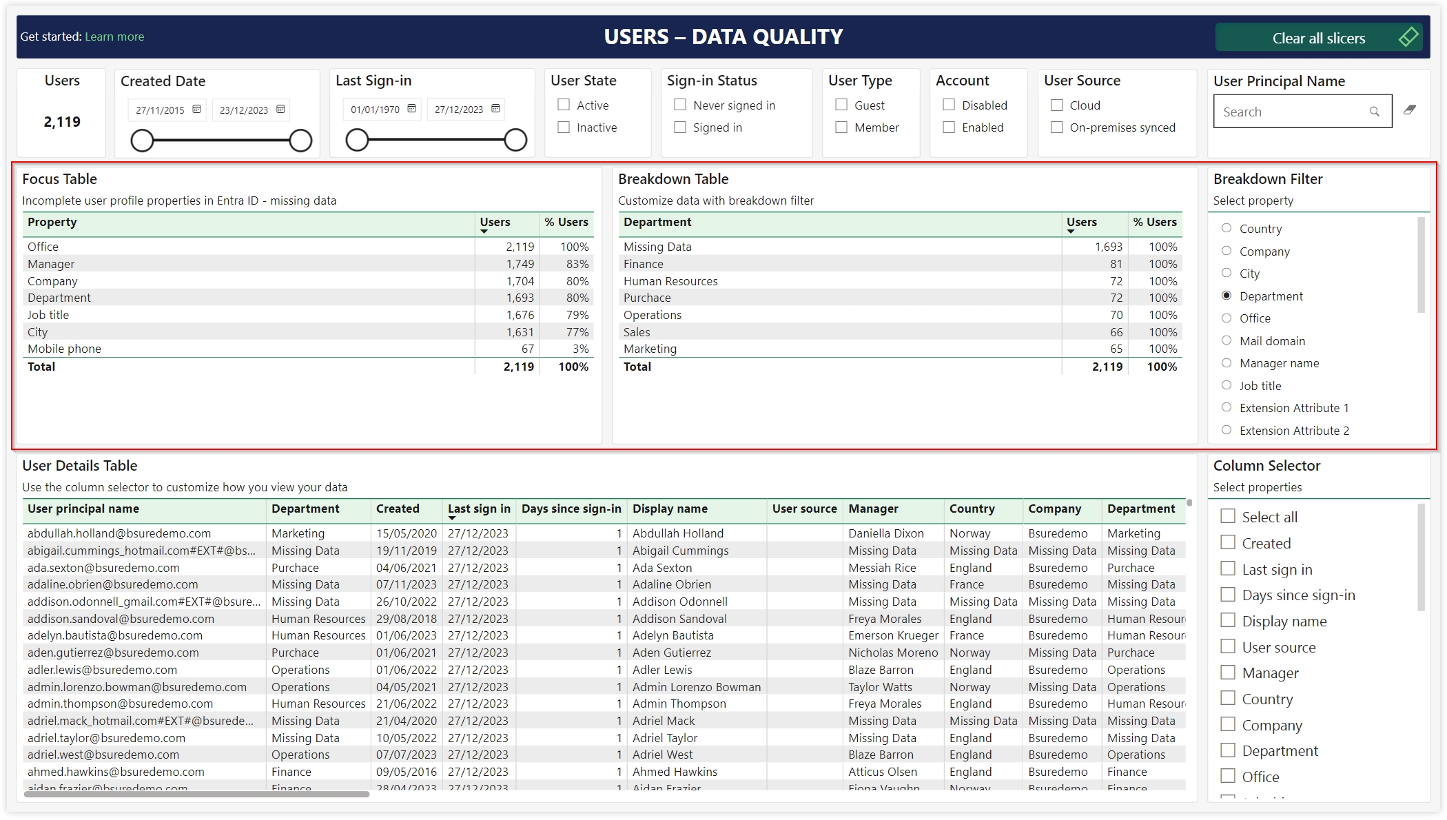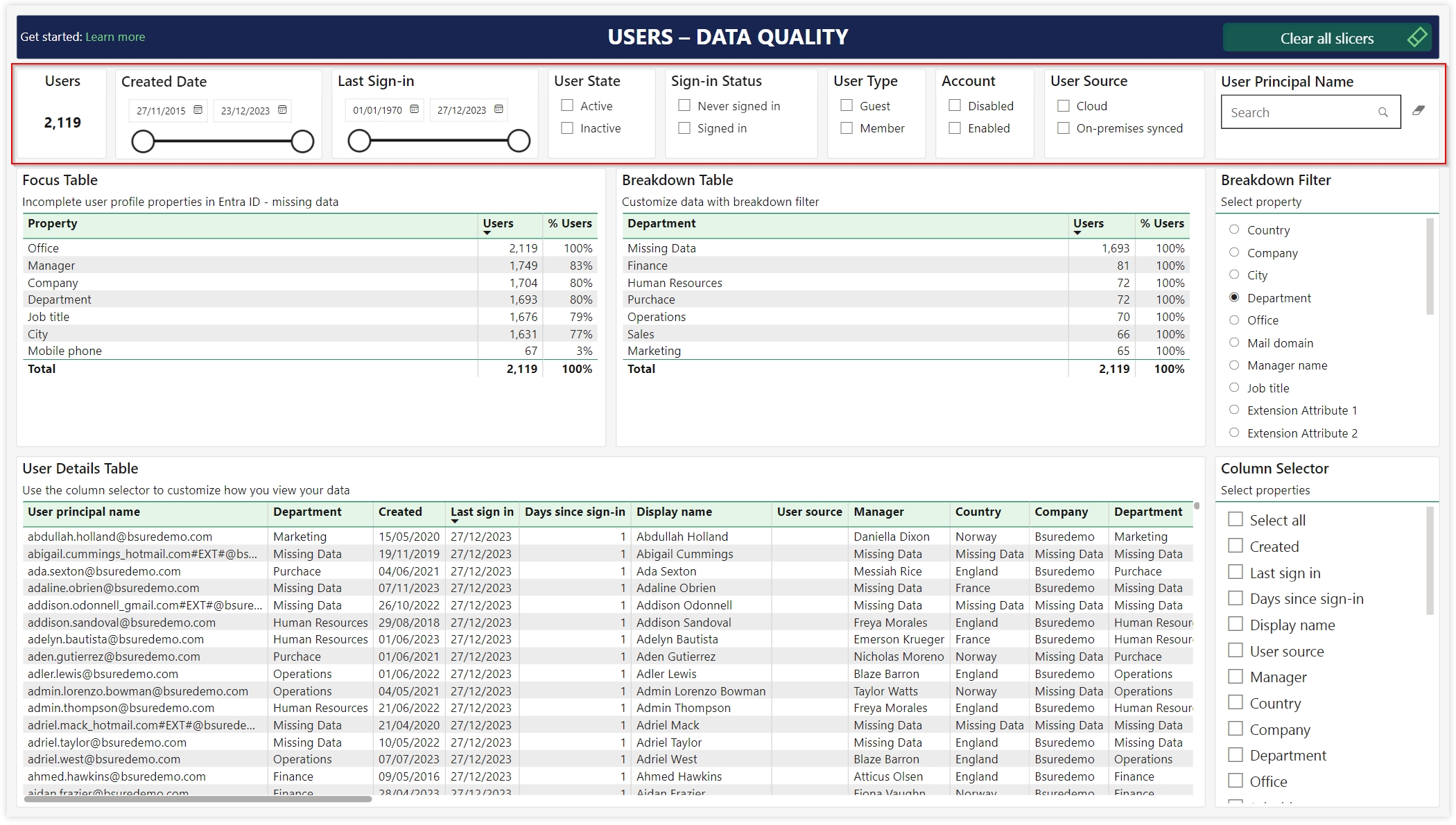 Use this report to get the insights you need to improve your users data quality