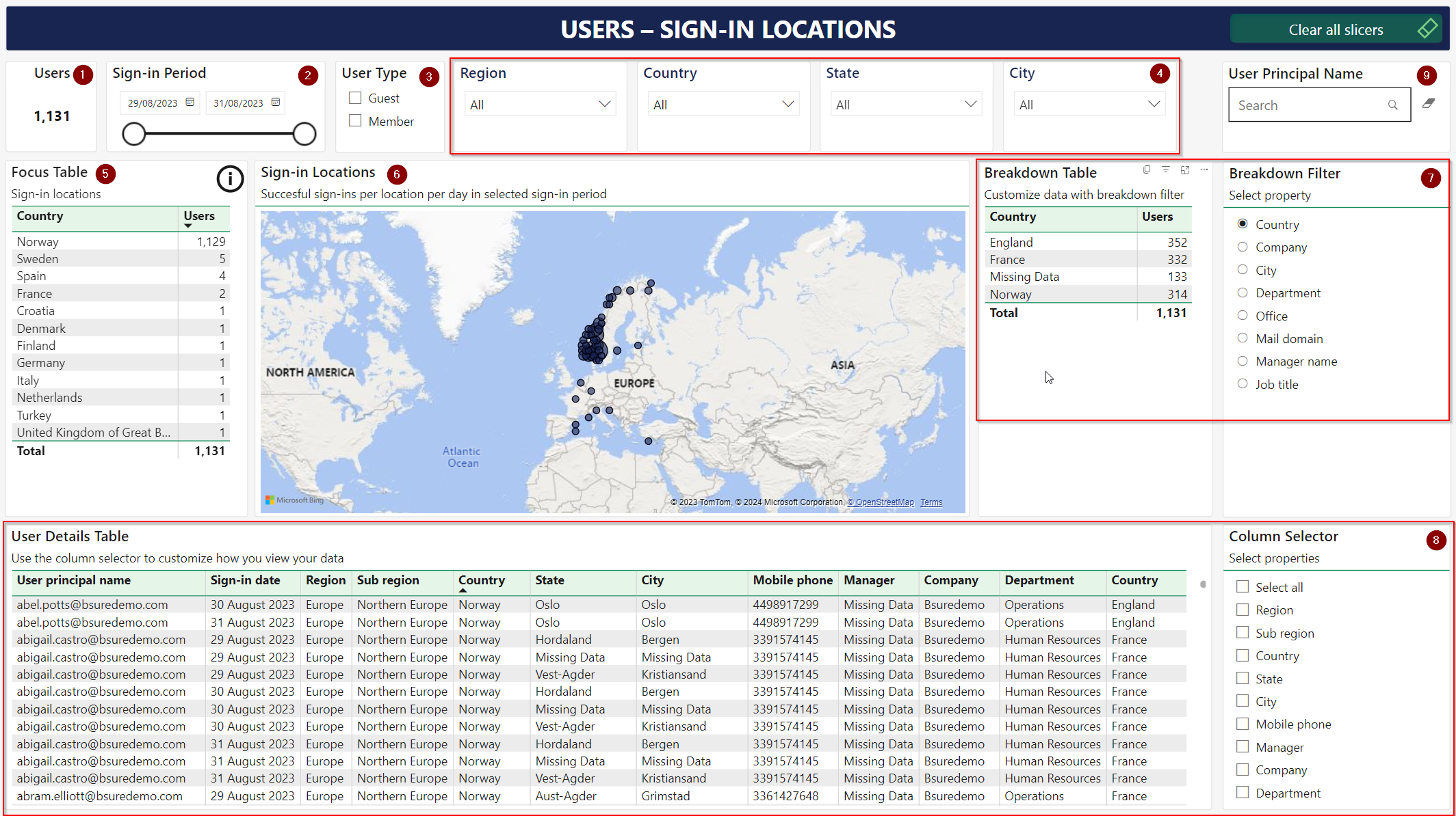 Description of the **Users - Sign-in Locations** report: