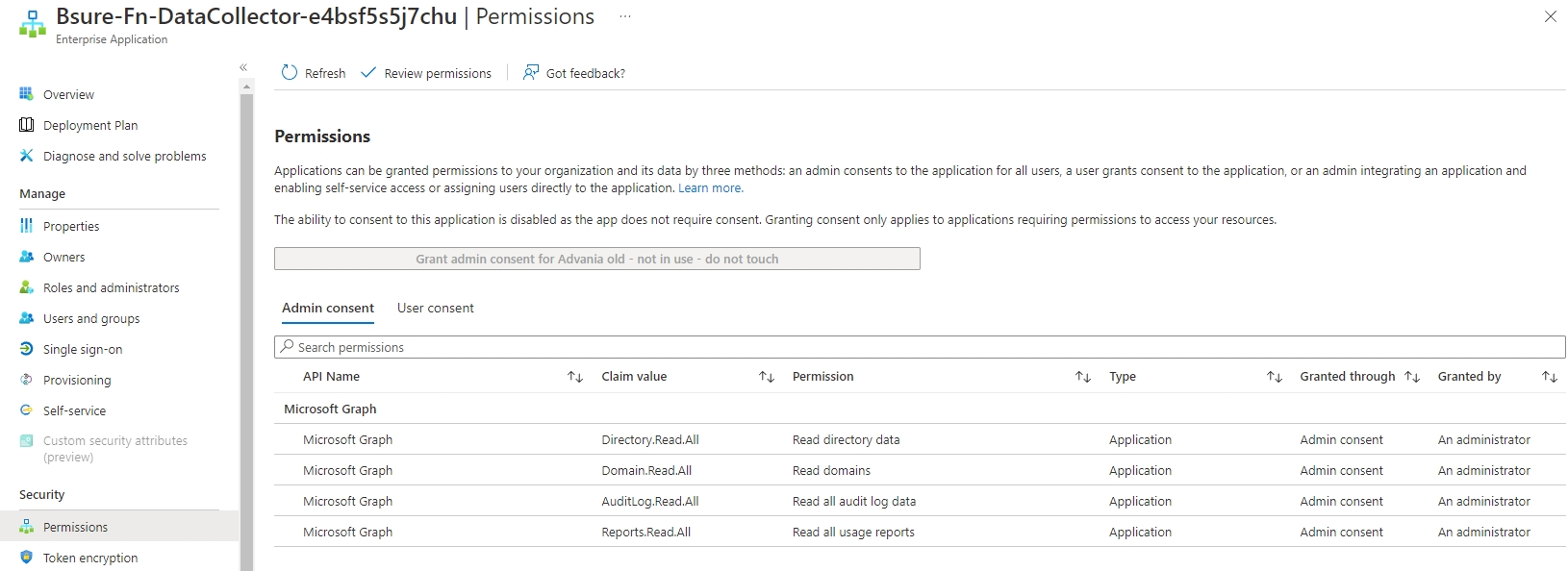 When you run the permissions script during the installation process, you give the Microsoft Graph permissions below to a Managed Identity used by the Azure Functions in the Managed Resource Group.