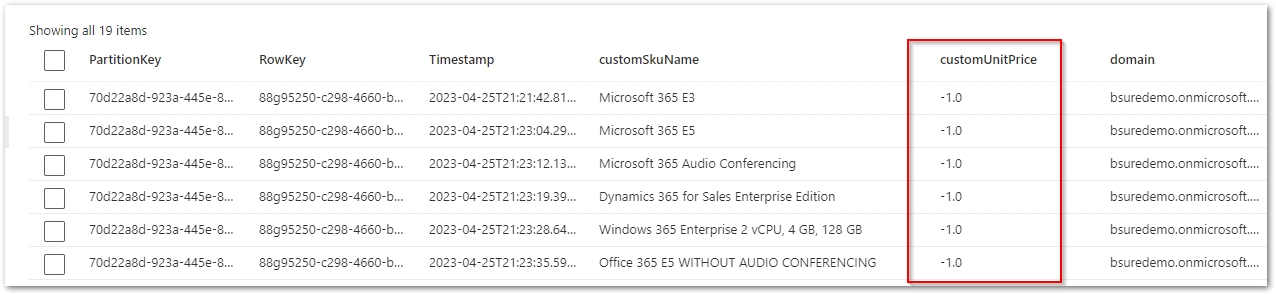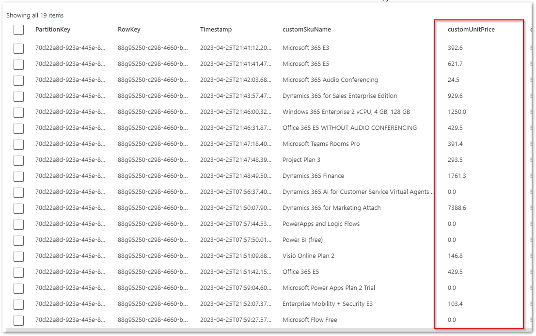 You need to update prices in the column customUnitPrice for all rows in the table! - Add your own prices for paid licenses. - Set free licenses to 0.