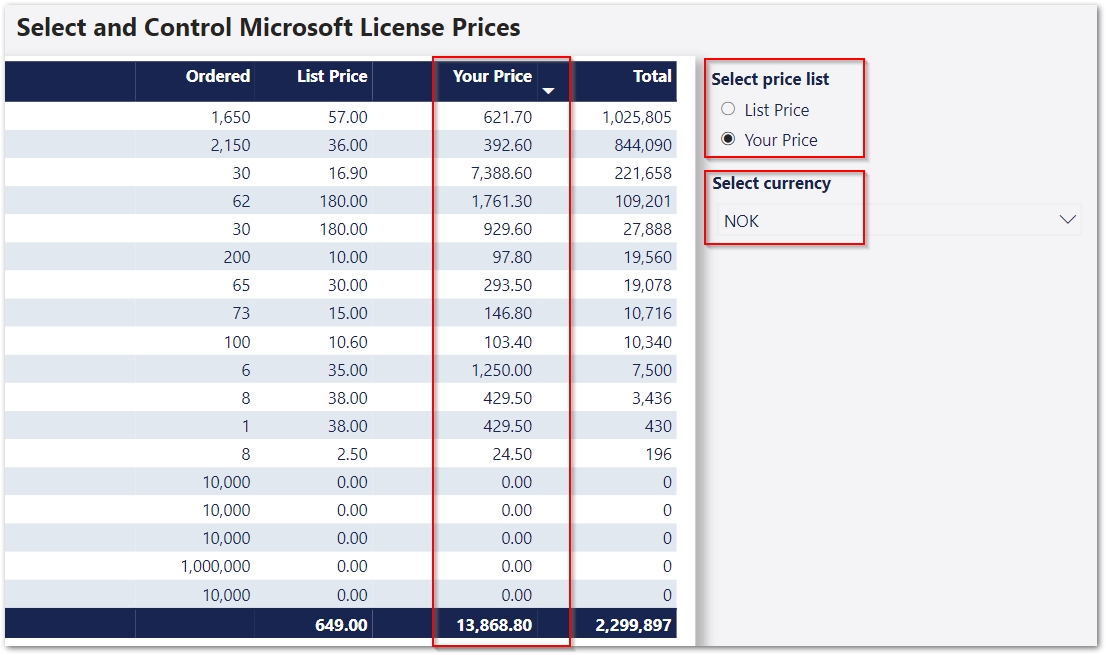 By default the prices in our Power Bi App are standard Microsoft list prices in USD. These prices will not be accurate for many organizations. This page will show you how you can add your own prices!