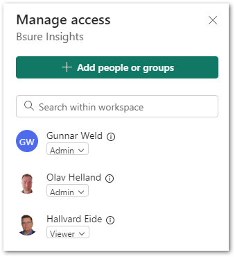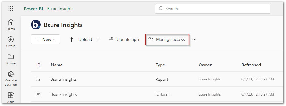 Giving access to the workspace is something you may choose to do if there are other users that need to administer the Bsure Insights app in your organization. For normal end user access, sharing the app only is sufficient.