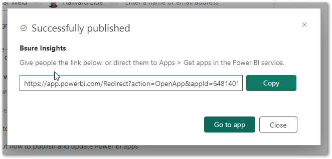 You can learn more about sharing and publishing apps in Power BI in Microsoft's documentation: <https://learn.microsoft.com/en-us/power-bi/collaborate-share/service-create-distribute-apps>