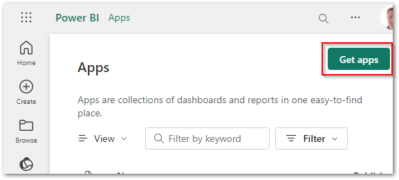 8. The users you shared the app with, will now find the app under **Apps** in Power BI. \